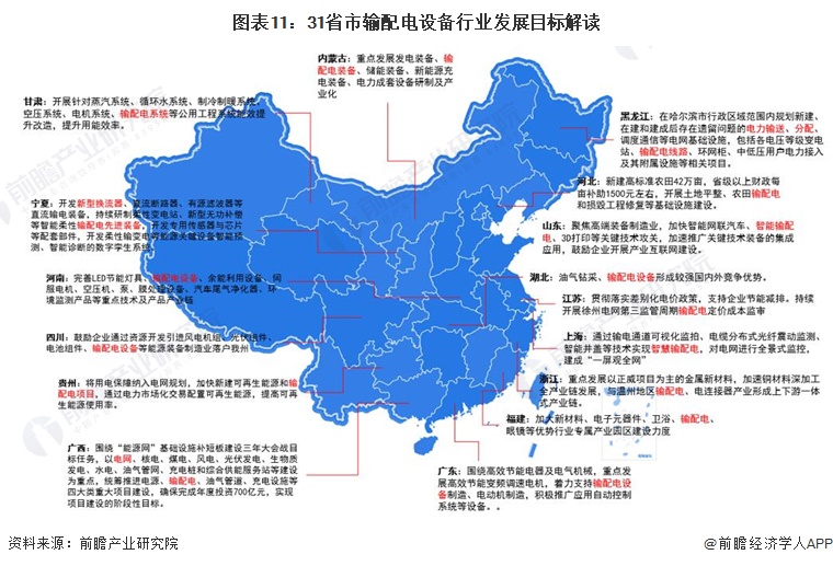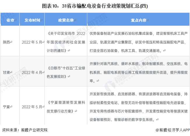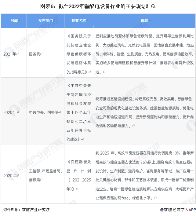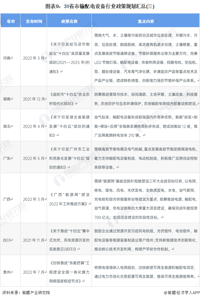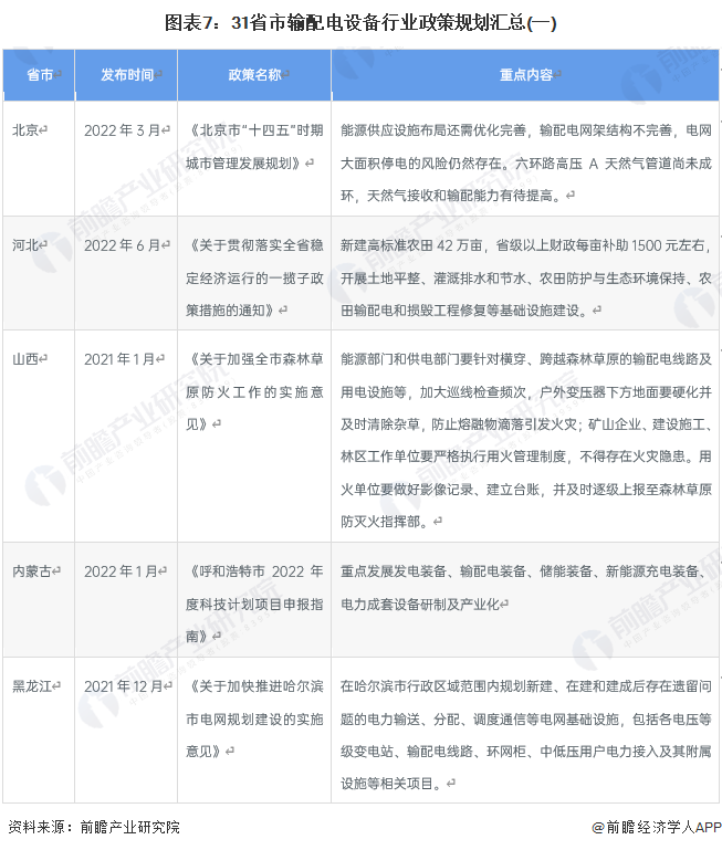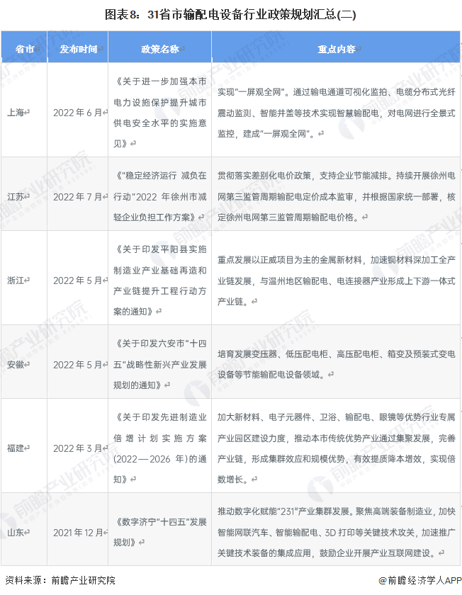 自“八五计划”以来,国务院、国家发改委等多部门都陆续印发了引导和规范电力以及输配电设备行业的发展政策,内容涉及大力发展电力基础设施、发展输配电技术等内容。“十四五”期间,我国主要省份也各自提出了输配电设备行业的发展目标。