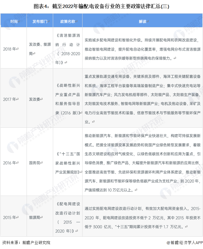 电力行业是我国国民经济发展的基础行业,输配电设备行业是我国电力行业的重要部门之一。行业主要政策包括《中国制造2025》、《配电网建设改造行动计划(2015-2020年)》、《清洁能源消纳行动计(2018-2020年)》、《国家综合立体交通网规划纲要》等,国家的政策鼓励意在提升输配电设备产品质量和创新能力,实现国产自给,打破国外垄断的局面。
