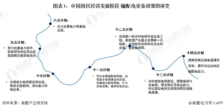 从行业规划历程来看:“八五”时期,我国政策侧重点是大力发展电力基础设施;“九五”时期,提出了积极研究和应用输变电技术;“十五”、“十一五”和“十二五”时期,提出加强城乡电网建设和改造,深化电力体制改革;“十三五”和“十四五”时期,重点提到加快智能电网建设,提高电网与发电侧、需求侧交互响应能力,提高特高压输电利用率。